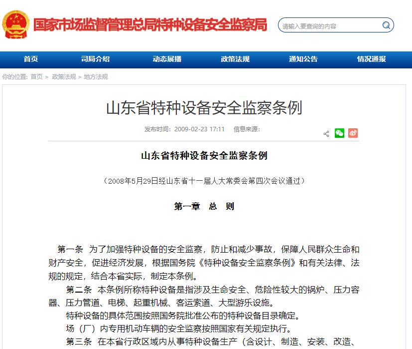 《山東省特種設備安全監察條例》2008年5月29日經山東省十一屆人大常委會第四次會議通過