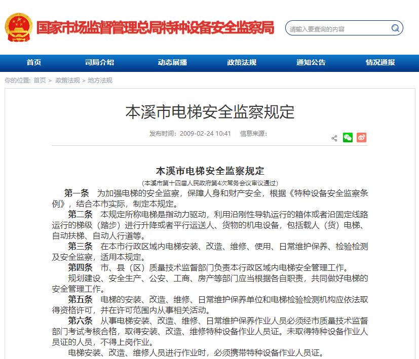 本溪市電梯安全監察規定