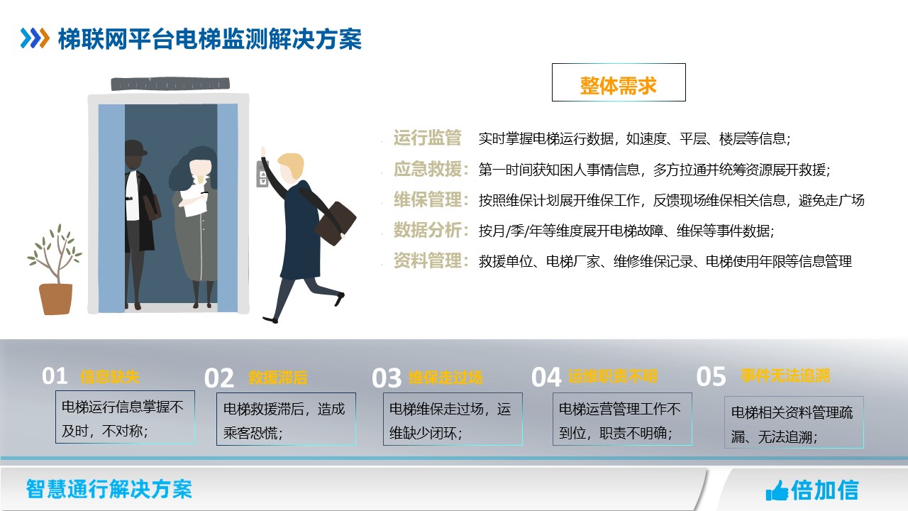 對電梯不同使用場景下的轎廂場景、運行狀態、乘梯人員行為、故障/其他突發事件、應急處置等維度進行監管。