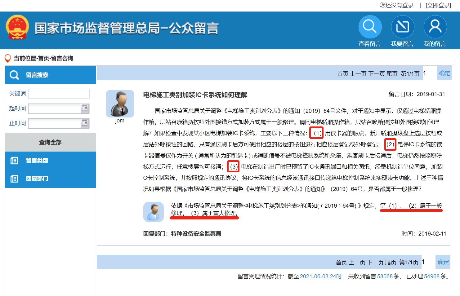 • 回復部門:特種設備安全監(jiān)察局