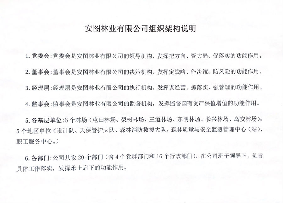 安圖林業有限公司 (機關)組織架構
